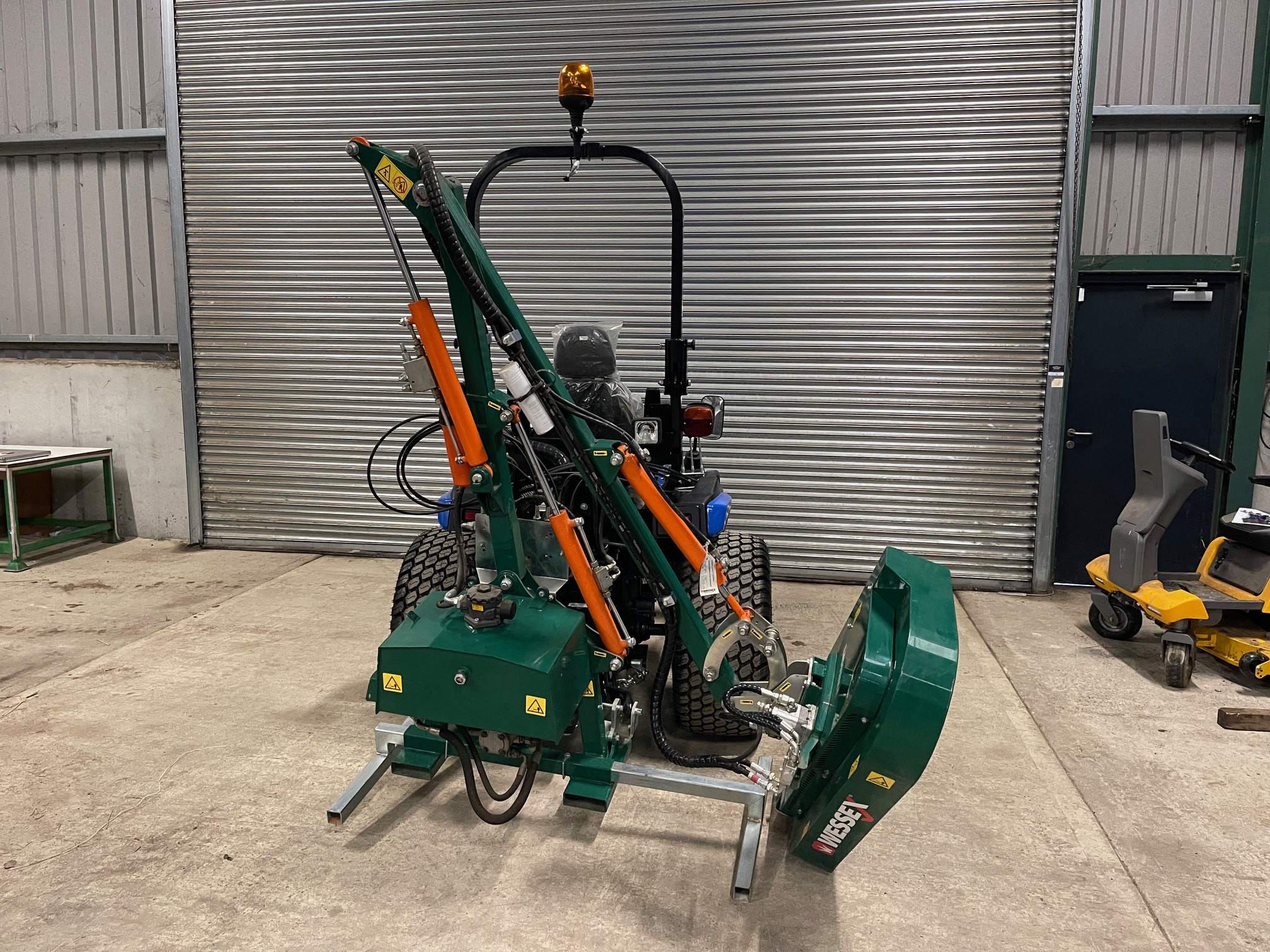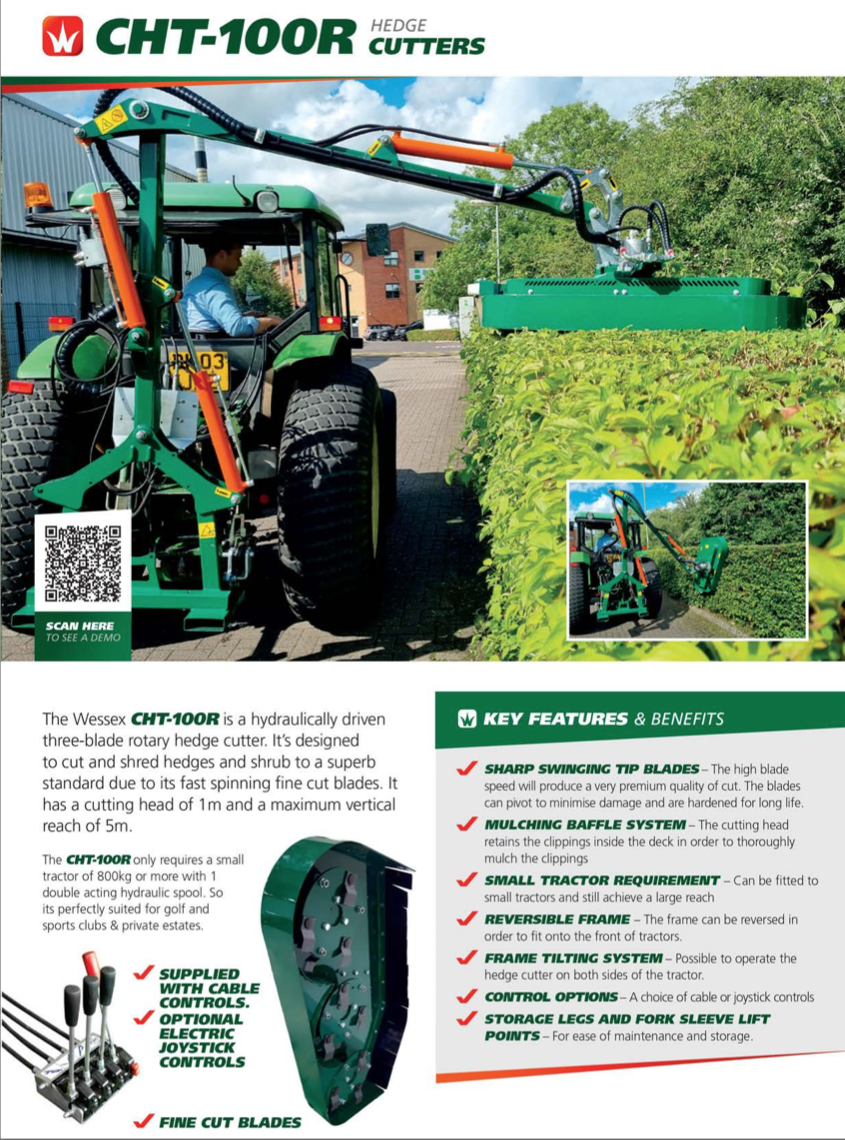 - Frame tilting system – Opening up the possibility to operate the hedge cutter on both sides of the tractor.