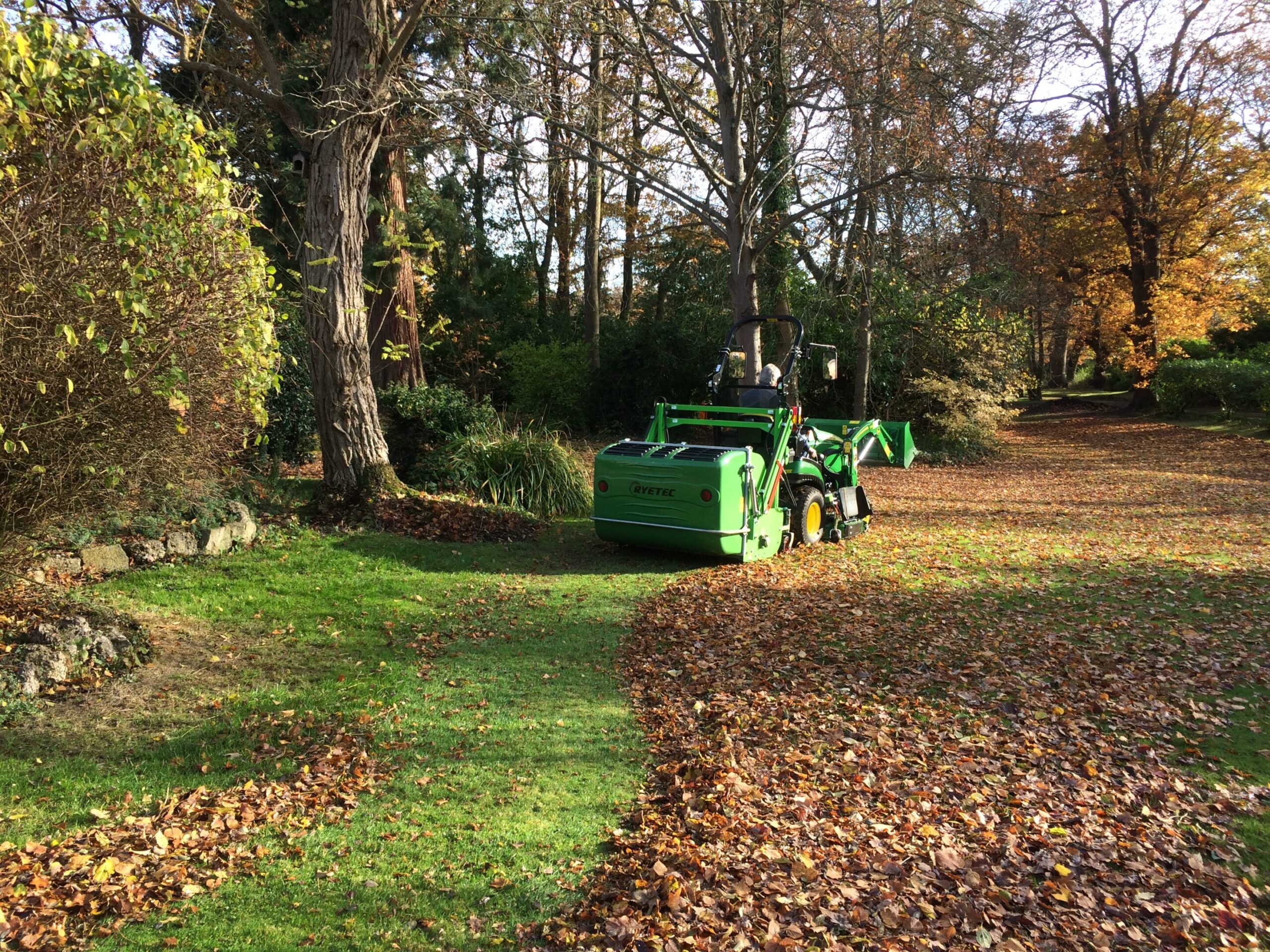 Mini flail mower collectors cut and collect on all types of grass from lawns to conservation areas and have scarifying capability. Their robust yet lightweight construction allows safe use on small tractors even with a full hopper of cuttings. The low profile design allows use in situations where overall height is an important consideration, ideal in orchards and large gardens where overhanging branches are a problem. The Mini Collector can also be used during autumn to pick up leaves, litter and even hedge clippings. The powerful action of the paddle flails mulch any collected material, vastly reducing its volume and speeding up the composting process. The collected material is tipped hydraulically from the tractor seat, or via a manual lever opening for tractors without an external hydraulic supply. High tip to 1.85m is available on the 1.2m and 1.6m models.